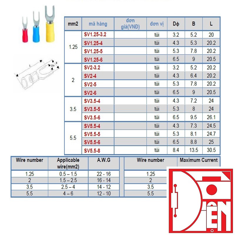 - Đầu cos chỉa bọc nhựa SV.- Chất liệu đồng mạ kẽm, bọc nhựa PVC.