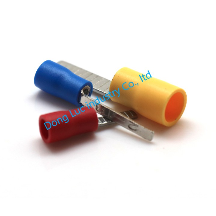 Giới thiệu [100cái] Đầu cos dây điện pin dẹp DBV 2-10 bọc nhựa, đầu cốt kim dẹt bấm dây 1.5mm 2.5mm, cosse (cót) đồng đấu nối điện