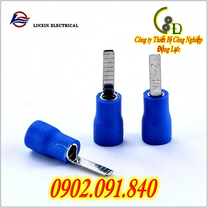 [100cái] Đầu cos dây điện pin dẹp DBV 2-10 bọc nhựa, đầu cốt kim dẹt bấm dây 1.5mm 2.5mm, cosse (cót) đồng đấu nối điện