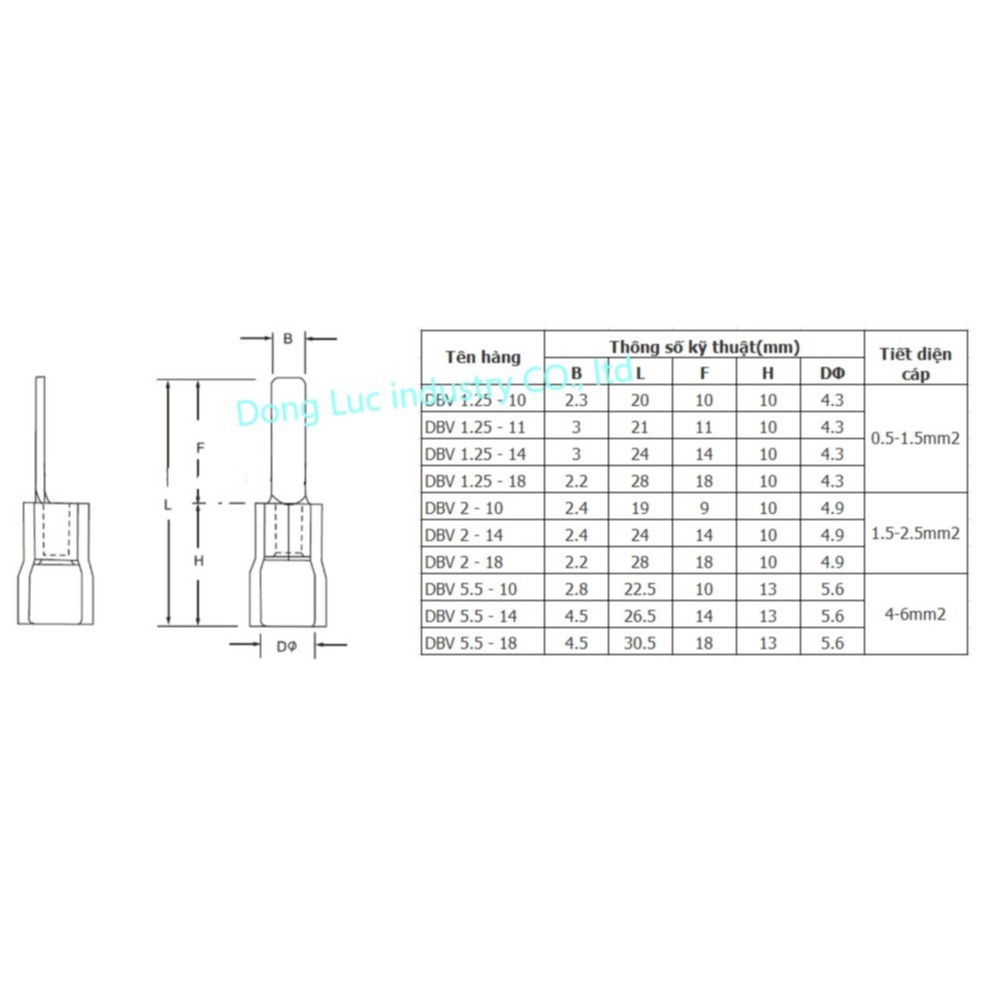 🔥 Đầu cos pin dẹp DBV 5.5-10 thông số kỹ thuật chi tiết