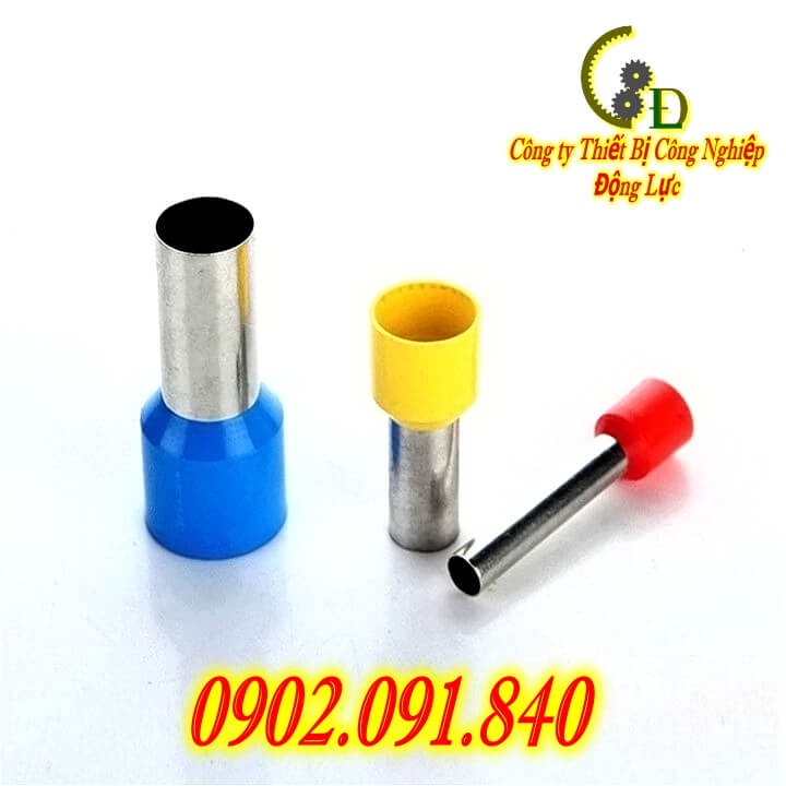 Đầu cos pin rỗng bọc phủ nhựa E2508 100cáiđầu cốt kim rỗng đơn, cosse bấm nối dây điện 2.5mm bằng đồng, đấu aptomat MCB