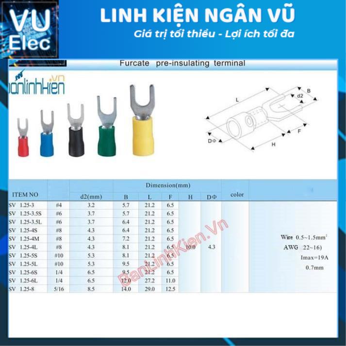- SV1.25-3: phù hợp với dây điện 0.5- 1.5mm; Lỗ vặn vít là 3mm