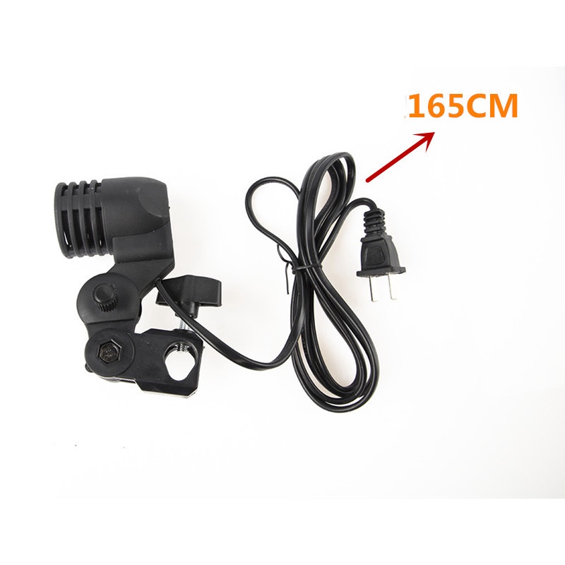 Thông tin sản phẩm Đầu đèn 1 đuôi dùng trong Studio: Chuẩn ren E27 phù hợp cho tất cả các bóng đèn có ren chuẩn E27. Chiều dài dây cắm: 1.65m. Chất liệu: nhựa cứng – độ bền cao. Trọng lượng: 350 gram. đèn có thể xoay 360 độ.Đầu đèn 1 đuôi dùng trong Studio tiện ích cho những buổi chụp sản phẩm, chụp trong studio với mức chi phí hợp lý nhất so với đèn Flash chuyên dụng.