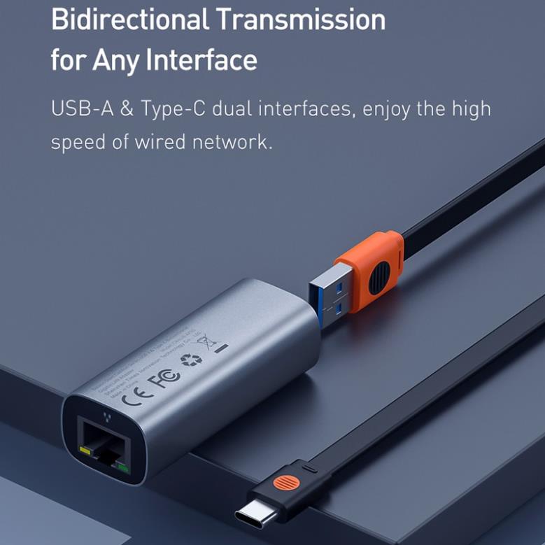 Máy tính & Laptop > Phụ Kiện Máy Tính > Bộ chia cổng USB & Đọc thẻ nhớ || Đầu điều hợp ethernet Baseus cổng USB/Type C sang RJ45 1000Mbps cho MacBook Pro Mi Box 3Còn hàng