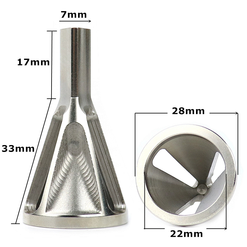 Được làm từ thép không gỉ với dạng hình như chiếc phễu. Với kích thước nhỏ gọn, chiếc doa đầu ty này dùng để lắp vào máy khoan, có thể chuốt được các đầu ren, đầu ty một cách dễ dàng làm cho đầu ty, đầu vít thuôn gọn, mượt hơn do đó dễ dàng tháo lắp ốc.