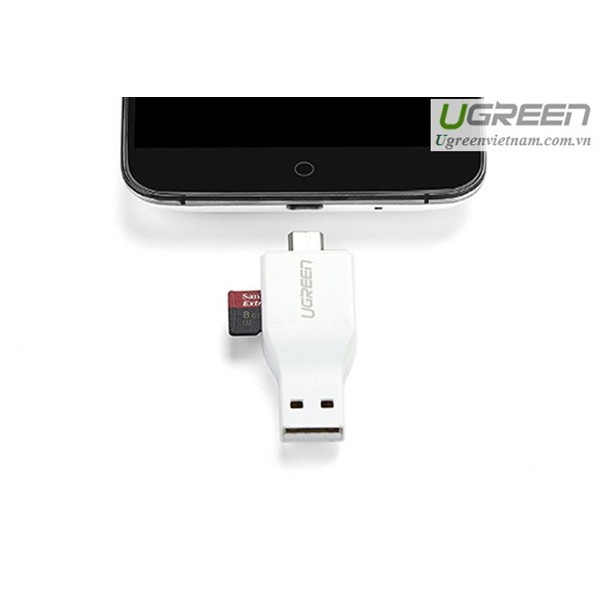 Đầu đọc thẻ 2 in 1 hỗ trợ OTG và USB TF / Micro-SD card Ugreen 30358Thiết bị đọc thẻ USB 2.0 USB 2.0 & Micro USB OTG được thiết kế cho cả máy tính và điện thoại di động / máy tính bảng với chức năng OTG. Nó không chỉ là một đầu đọc thẻ USB 2.0 tiêu chuẩn, mà còn là một đầu đọc thẻ OTG. Dễ dàng chuyển đổi giữa máy tính và các thiết bị OTG-enabled với 1 đầu đọc thẻ, giúp tiết kiệm chi phí và đem lại tiện ích cho bạn.