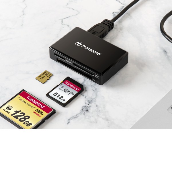 Giới thiệu Đầu đọc thẻ 3.1 Transcend RDF8 Multi Card Reader - hỗ trợ 3 khe MicroSD/SD/CF (Đen)