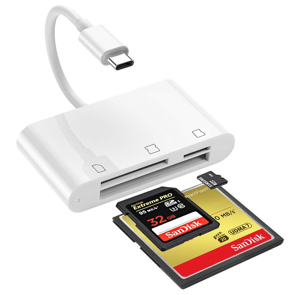 Đầu đọc thẻ 3 in 1 TF, SD, CF Type C cho Mac, Điện thoại