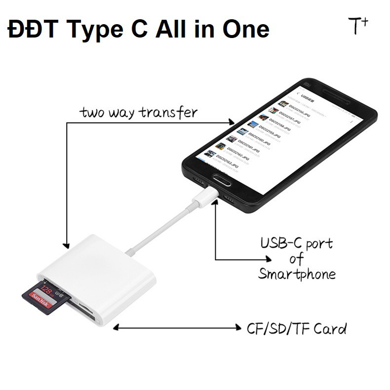 Đầu đọc thẻ nhớ CF SD TF cho android. Tốc độ truyền dữ liệu nhanh: tốc độ USB 2.0, hỗ trợ thẻ SD. Nó có thể dễ dàng tải về các hình ảnh và video để điện thoại android của bạn bằng cách đọc, chia sẻ video hoặc hình ảnh cho gia đình hoặc bạn bè của bạn bất cứ lúc nào.