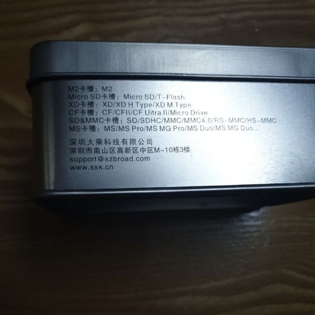 Đóng gói: Card đọc thẻ All-in-one SSK SCRM-025, cáp mini USB 5PIN 2.0 10Cm, bông đệm, hộp sắt đựng sản phẩm