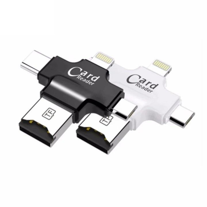 Máy tính & Laptop > Phụ Kiện Máy Tính > Bộ chia cổng USB & Đọc thẻ nhớ || Đầu đọc thẻ đa năng 4 in 1(OTG, USB, TYPE - C, IOS) dùng cho iOS - Android - PC- Macbook - Đầu đọc thẻ nhớ all in oneCòn hàng