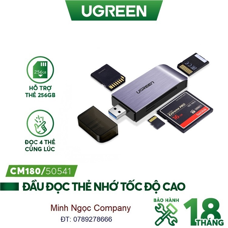 Máy tính & Laptop > Phụ Kiện Máy Tính > Bộ chia cổng USB & Đọc thẻ nhớ || Đầu đọc thẻ đa năng USB 3.0 hỗ trợ SD/TF/CF/MS chính hãng Ugreen 50541 cao cấp - Hàng chính hãngCòn hàng