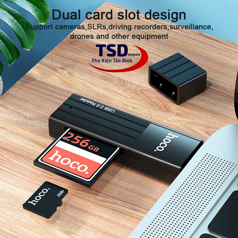 Máy tính & Laptop > Phụ Kiện Máy Tính > Bộ chia cổng USB & Đọc thẻ nhớ || Đầu Đọc Thẻ Nhớ 2.0 / 3.0 Hoco HB20 Chính Hãng, Khe Cắm Thẻ SD & Micro SDCòn hàng