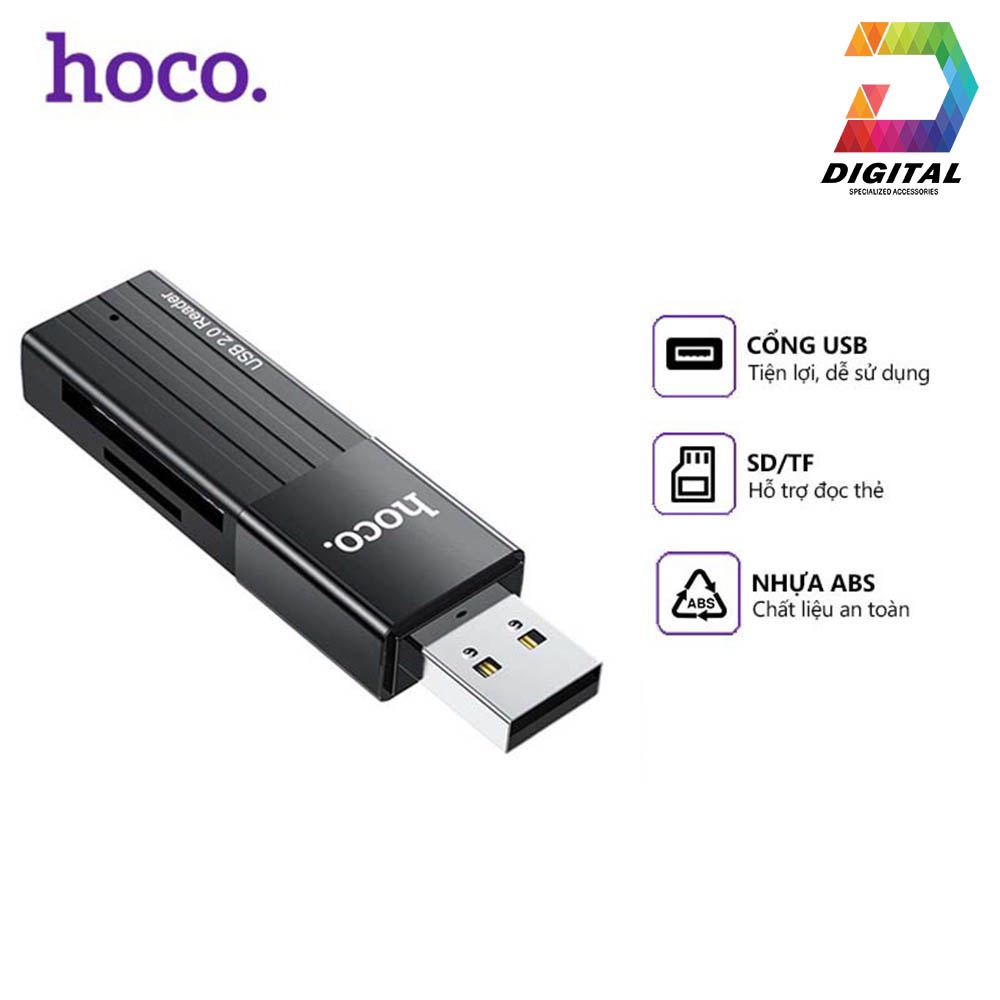 - Đầu đọc thẻ nhớ đa năng Hoco HB20 được gia công bằng chất liệu nhựa PVC siêu bền có tính chịu lực cao. Bên cạnh đó là thiết kế vô cùng nhỏ gọn với tông màu đen, là giải pháp tối ưu cho việc truyền tải dữ liệu từ thẻ nhớ vào máy tính của bạn.