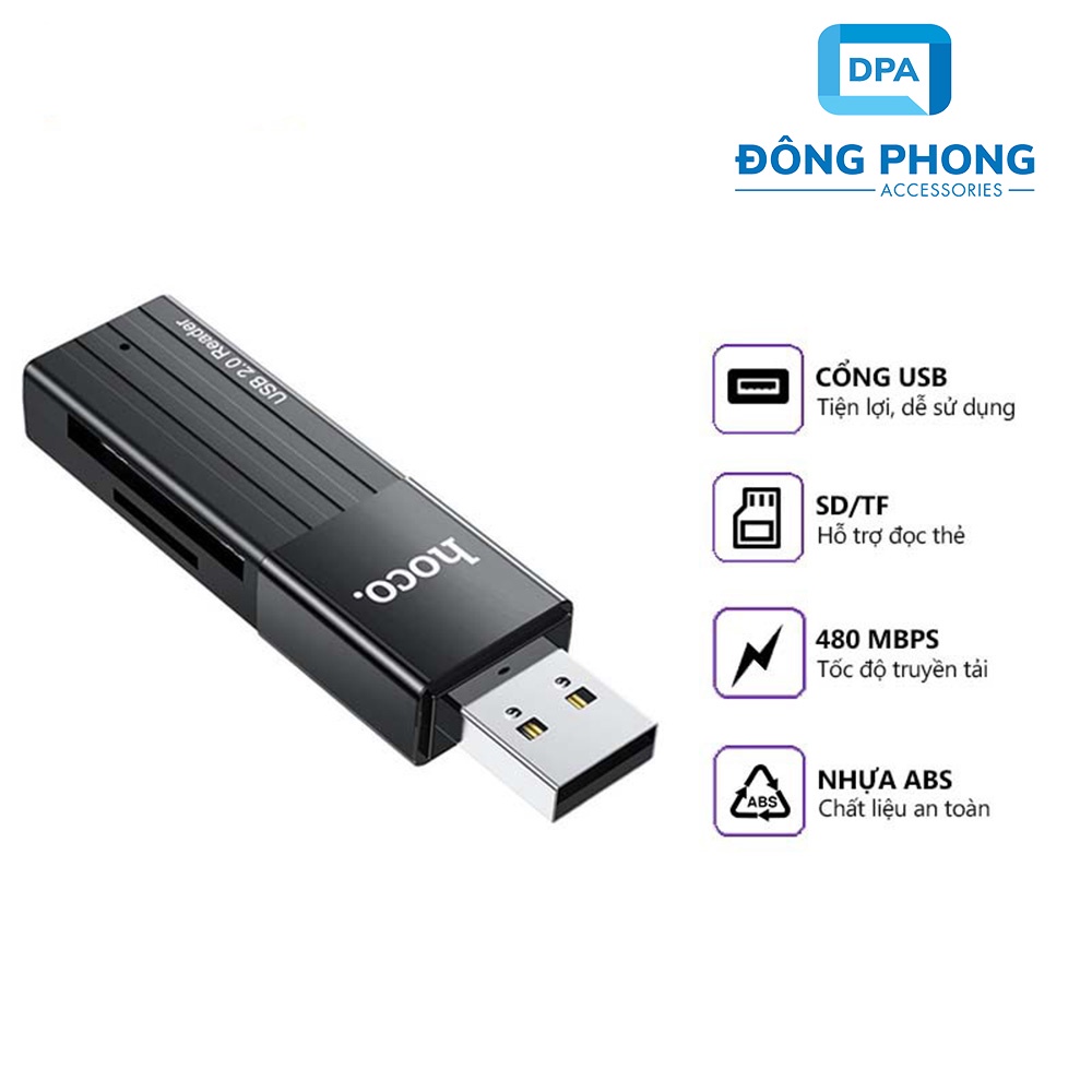 Đầu Đọc Thẻ Nhớ 2.0 Hoco HB20 Chính Hãng, Khe Cắm Thẻ SD & Micro SDGiới thiệu sản phẩm: