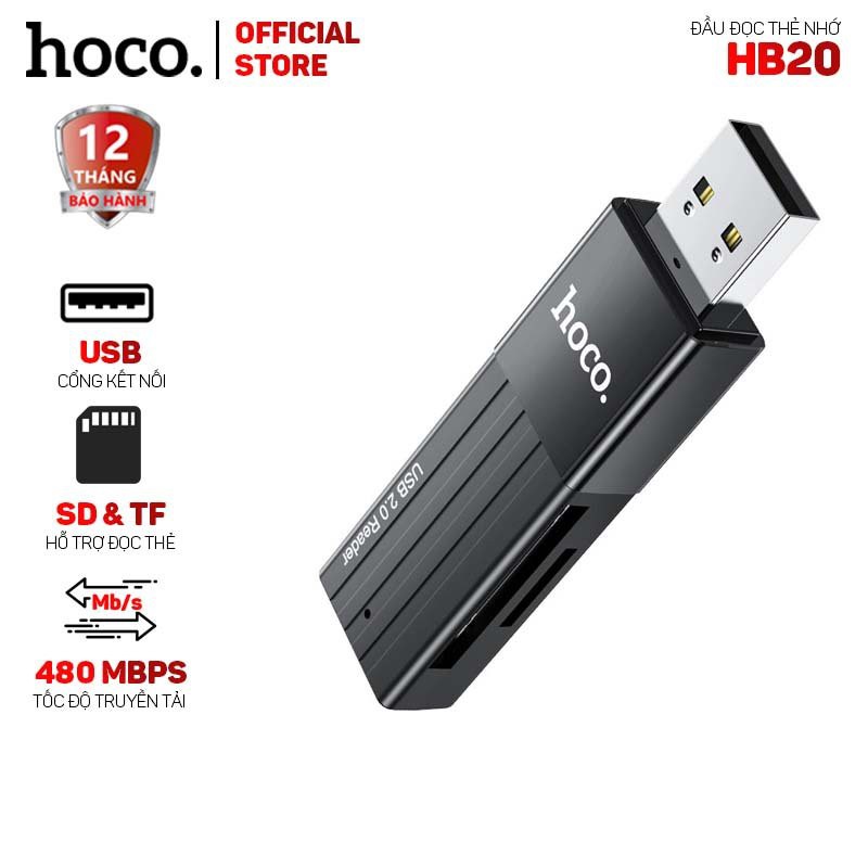 Máy tính & Laptop > Phụ Kiện Máy Tính > Bộ chia cổng USB & Đọc thẻ nhớ || Đầu đọc thẻ nhớ 2 trong 1 Hoco HB20, hỗ trợ đọc thẻ SD và TF, tương thích với nhiều thiết bịCòn hàng