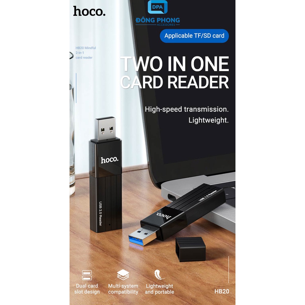 Sản phẩm hiện đang được phân phối tại ĐÔNG PHONG ACCESSORIES. Bên cạnh Đầu Đọc Thẻ Nhớ 3.0 / 2.0 Hoco HB20 Chính Hãng, Khe Cắm Thẻ SD & Micro SD tuyệt vời trên, chúng tôi còn cung ứng rất nhiều phụ kiện thú vị khác.