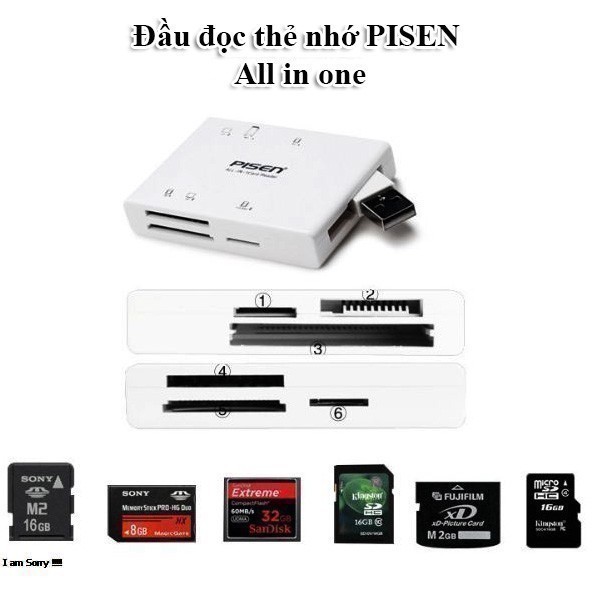 Đầu đọc thẻ nhớ PlSEN 05 ( thẻ CF, SD, MicroSD...) -- > Màu TrắngĐầu đọc thẻ nhớ PlSEN 03 ( thẻ SD, Micro SD... ) - Màu Xanh ( không đọc được thẻ CF