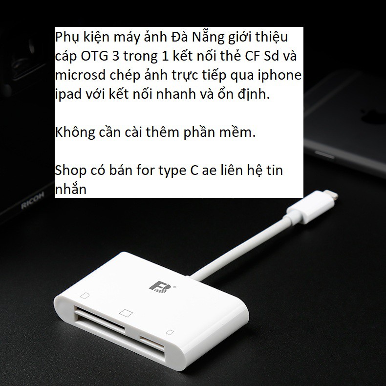 Điện Thoại & Phụ Kiện > Phụ kiện > Thẻ nhớ || Đầu đọc thẻ nhớ CF SD microsd cho điện thoại iphone, ipad - Cáp OTG 3 in 1Còn hàng