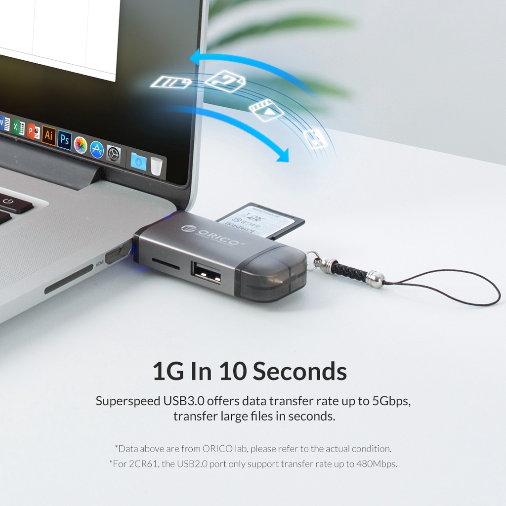 Đầu đọc thẻ nhớ đa năng 6-in-1 chuẩn USB Type-C/USB Orico 2CR61🔸 Tính năng nổi bật:
