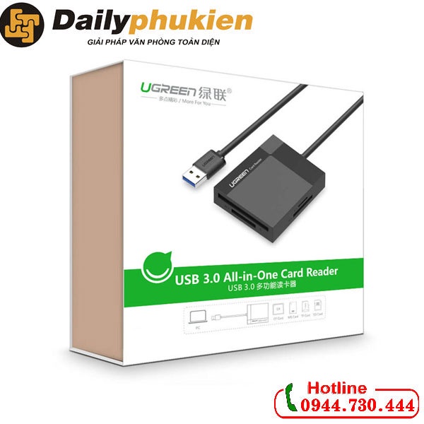 Máy tính & Laptop > Phụ Kiện Máy Tính > Bộ chia cổng USB & Đọc thẻ nhớ || Đầu đọc thẻ nhớ đa năng SD/TF/CF/MS Ugreen 30231 chuẩn USB 3.0 dài 1m dailyphukienCòn hàng