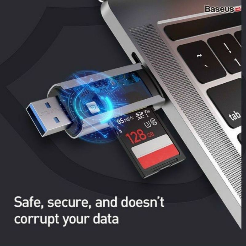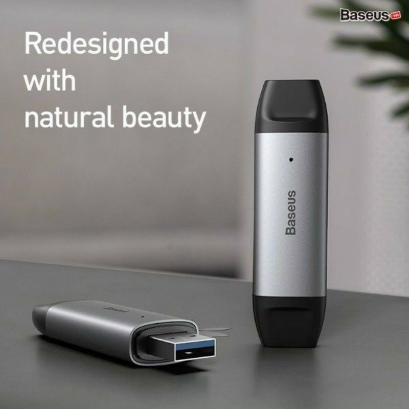 Đầu đọc thẻ nhớ đa năng Baseus Lentil - Cabin Card Reader Space chuyên dùng để đọc các loại thẻ nhớ cơ bản hiện nay . Với 2 đầu kết nối phổ thông là Type C và USB 3.0 tốc độ cao sản phẩm là dụng cụ giúp cho bạn dễ dàng kết nối và chia sẽ dữ liệu, hình ảnh, video từ thẻ nhớ của Camera quan sát, máy quay, máy ảnh ... đến các thiết bị số khác như smartphone, tablet, Macbook, Laptop...- Đầu đọc thẻ nhớ Baseus Lentil - Cabin có 2 cổng giao tiếp phổ thông hiện nay là Type - C và USB3.0 ở 2 đầu có thể kết nối dễ dàng với hầu hết các thiết bị số hiện nay . Tốc độ truyền tải dữ liệu có thể lên đến 5Gbps, truyền file dữ liệu với kích thước 1GB chỉ trong 2.5 giây.