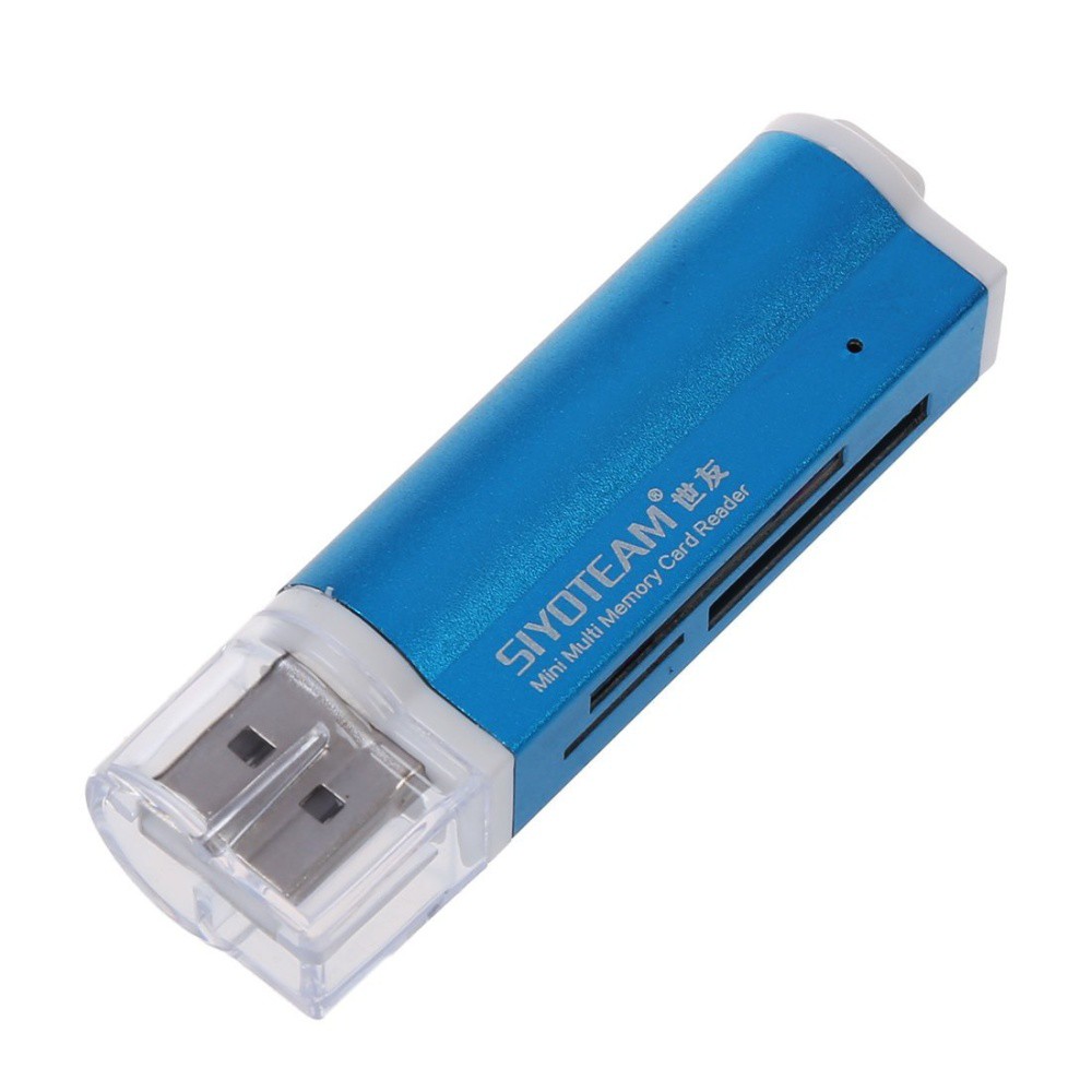 SIYOTEAM SY-662 Đầu đọc thẻ nhớ đa năng USB 2.0 4 trong 1 cho TF M2 Micro SD MMC Thẻ nhớ SDHC MS Duo RS-MMC (Màu xanh)