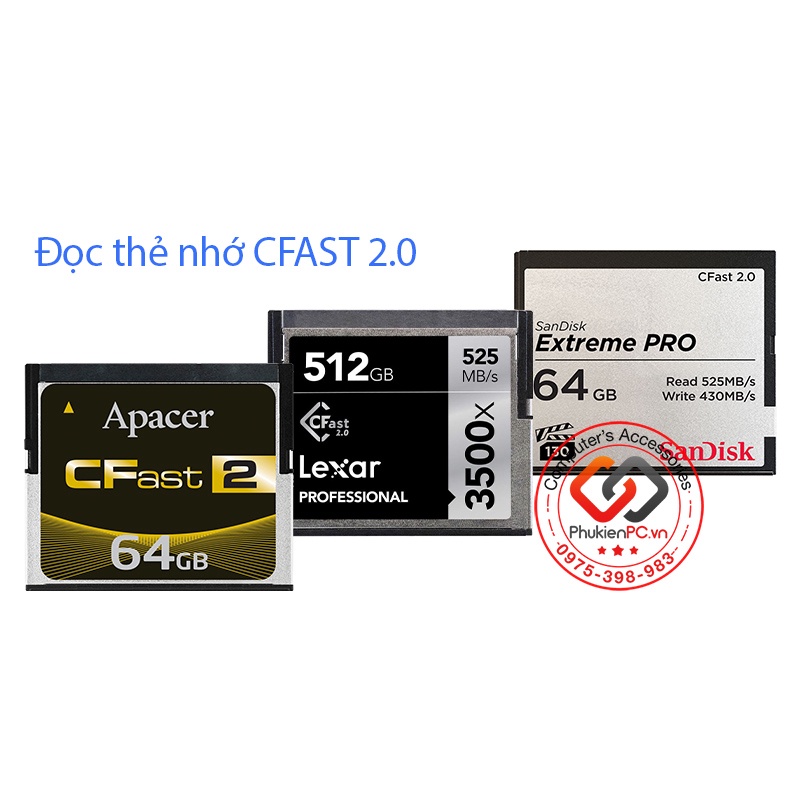 Cameras & Flycam > Phụ kiện máy ảnh > Khác || Đầu đọc thẻ nhớ máy ảnh, máy quay phim CFAST 2.0 sang USB 3.0 tốc độ caoCòn hàng