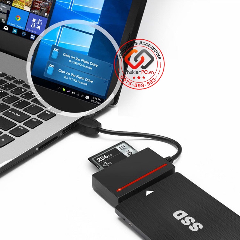 Giao tiếp máy tính qua USB 3.0, hỗ trợ OTG chi điện thoại, máy tính bảng. Bạn sử dụng kết hợp với đầu chuyển Micro USB OTG (chuyển micro usb sang USB chân cái) hoặc Type-C OTG…