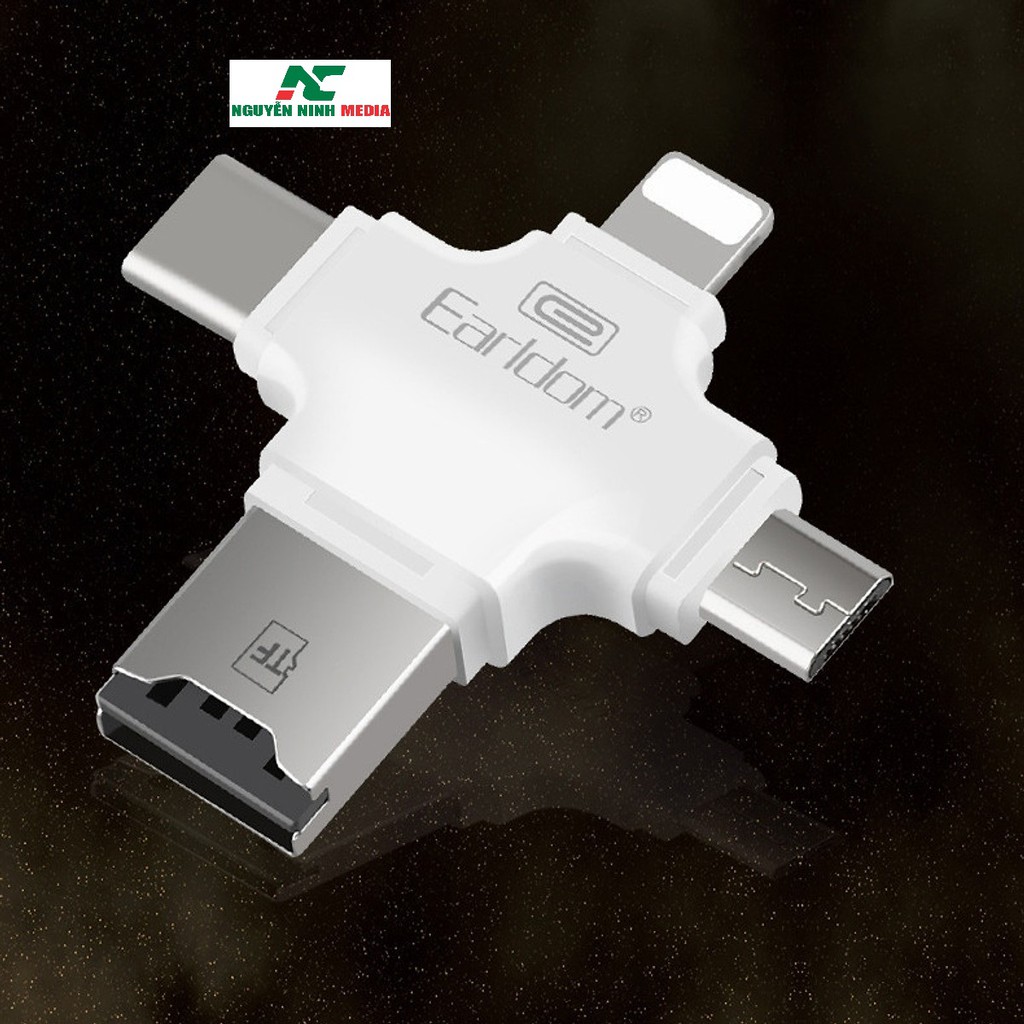 Máy tính & Laptop > Phụ Kiện Máy Tính > Bộ chia cổng USB & Đọc thẻ nhớ || Đầu đọc thẻ nhớ OTG 4in1 cho iOS/Android/PC- Macbook Type C Earldom ET-OT20 - Hỗ trợ iOS 12 mới nhấtCòn hàng