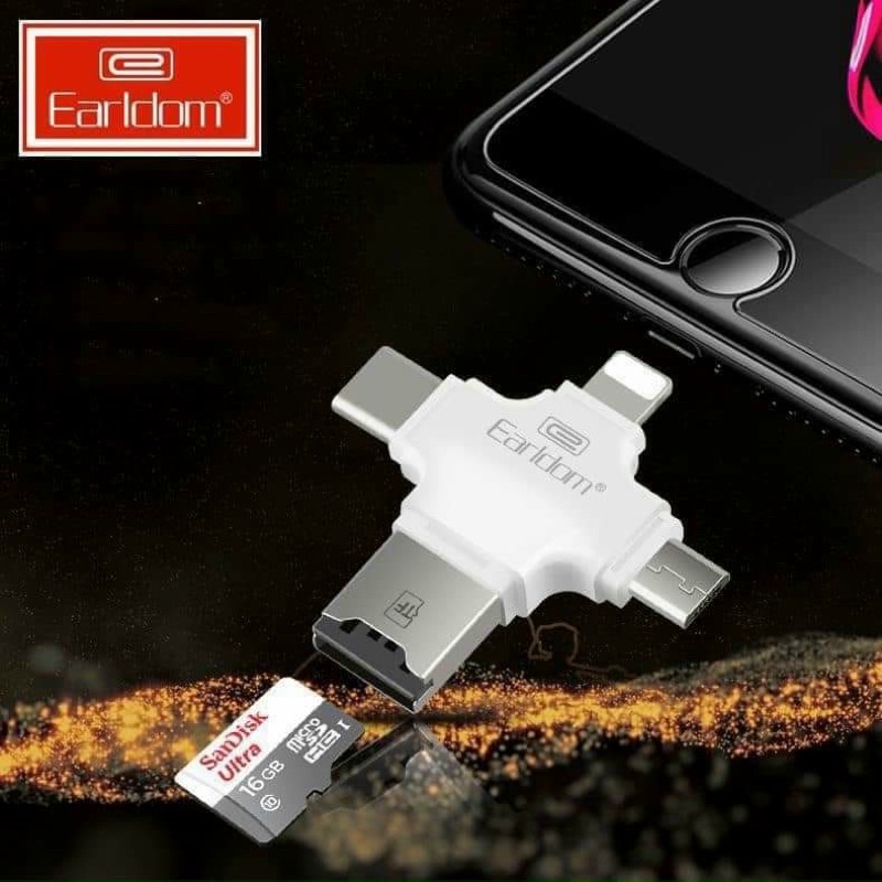 Máy tính & Laptop > Phụ Kiện Máy Tính > Bộ chia cổng USB & Đọc thẻ nhớ || Đầu đọc thẻ nhớ OTG 4in1 (Typ C,Micro,Lightning,Usb)Còn hàng