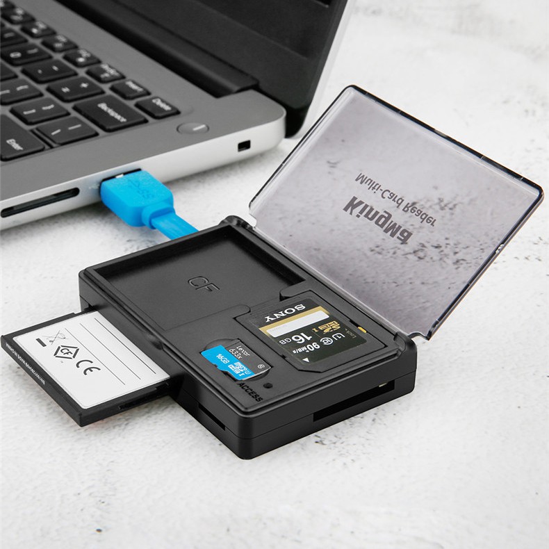 Sản phẩm là đầu đọc thẻ nhớ đa năng có tích hợp hộp đựng thẻ vừa dùng đọc thẻ và vừa dùng lưu trữ thẻ nhớ.Đầu đọc thẻ nhớ SD,Micro SD,TF,CF cổng USB 3.0 thích hợp cho mọi đối tượng, dùng mang đi du lịch cực kỳ hợp lý vì tính đa năng của nó.