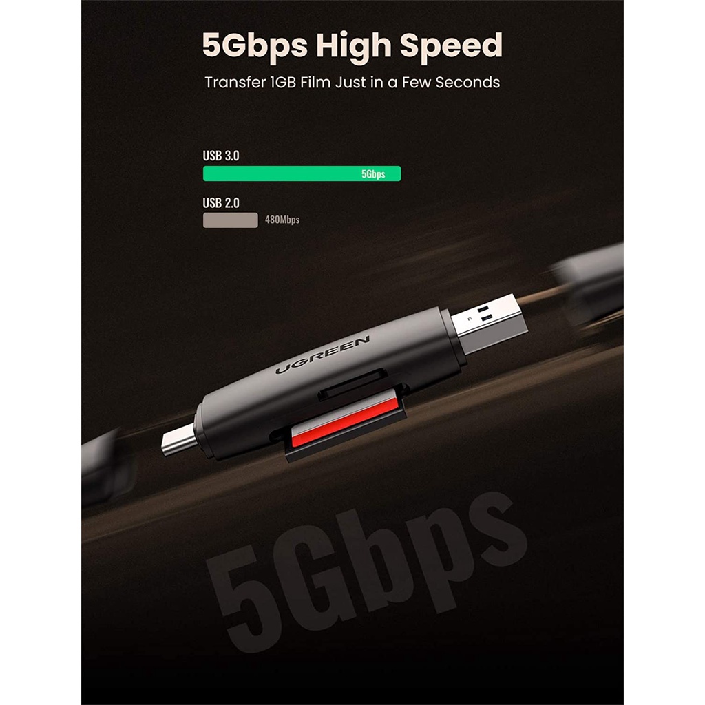 Đầu đọc thẻ nhớ SD/TF 2 trong 1 UGREEN 80191 USB-A & Type-CTính năng: