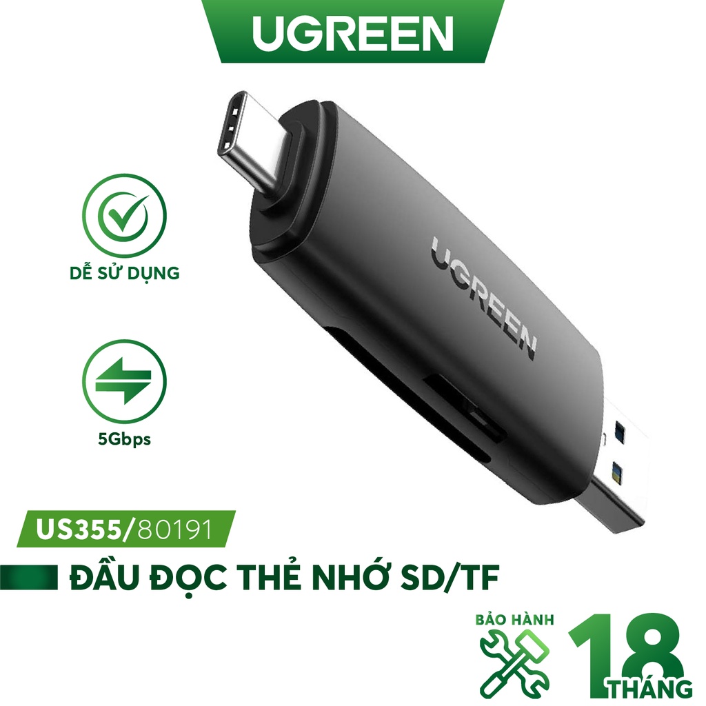 Giới thiệu Đầu đọc thẻ nhớ SD/TF 2 trong 1 UGREEN 80191 USB-A & Type-C - Hàng chính hãng