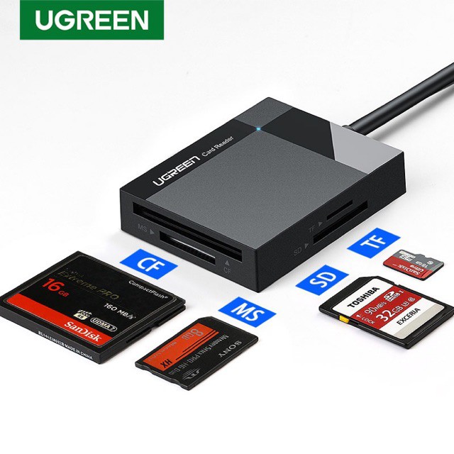 Máy tính & Laptop > Phụ Kiện Máy Tính > Bộ chia cổng USB & Đọc thẻ nhớ || Đầu đọc thẻ nhớ SD/TF/CF/MS chuẩn USB 3.0 Ugreen 30229 chính hãng màu đenCòn hàng