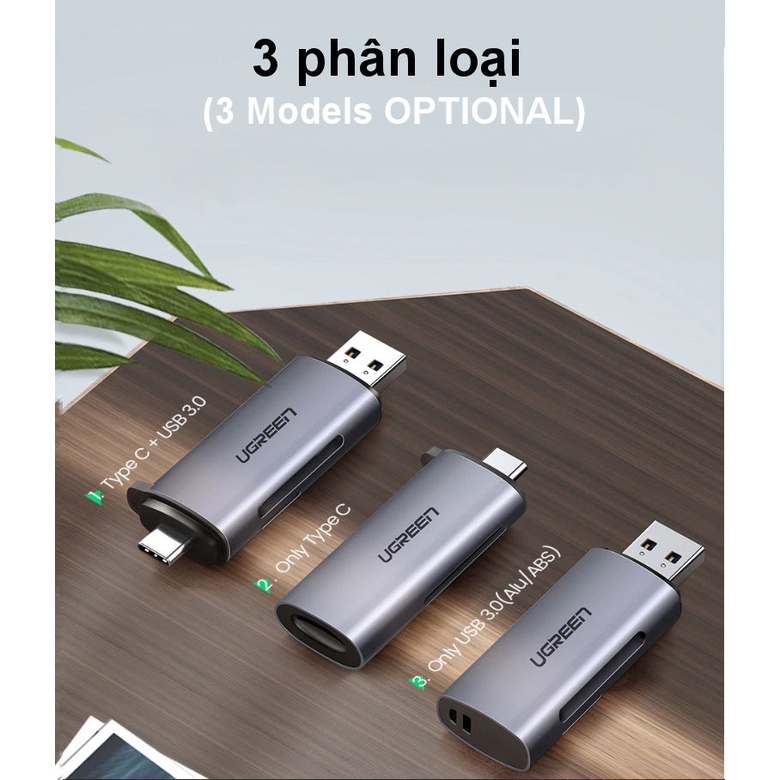 Máy tính & Laptop > Phụ Kiện Máy Tính > Bộ chia cổng USB & Đọc thẻ nhớ || Đầu đọc thẻ nhớ SD/TF chuẩn USB Type C và USB 3.0 Ugreen - Hàng chính hãngCòn hàng