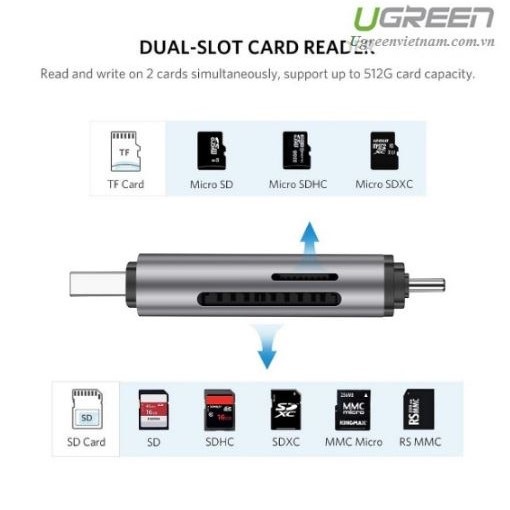 Đầu đọc thẻ nhớ Ugreen 50706 hỗ trợ các loại thẻ: