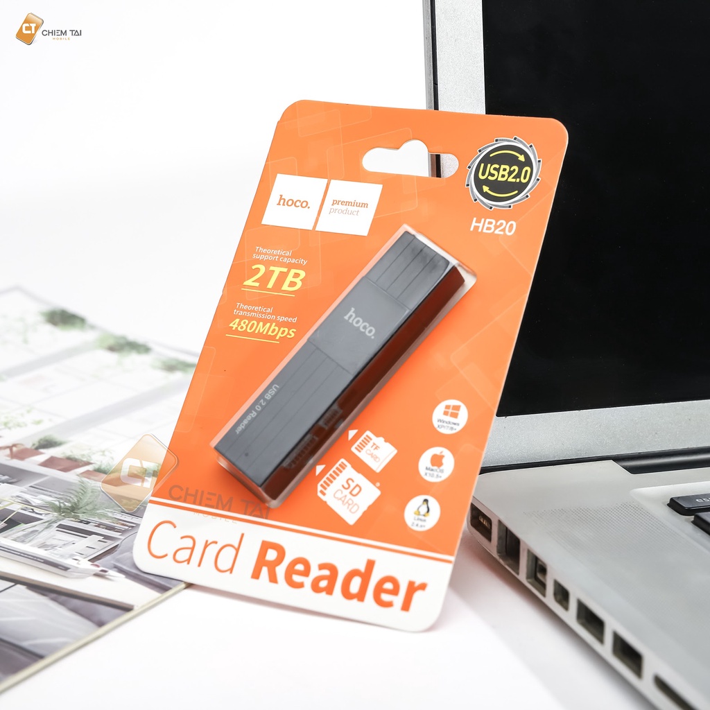 Máy tính & Laptop > Phụ Kiện Máy Tính > Bộ chia cổng USB & Đọc thẻ nhớ || Đầu đọc thẻ nhớ SD/TF Hoco HB20Còn hàng