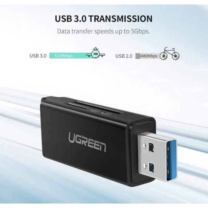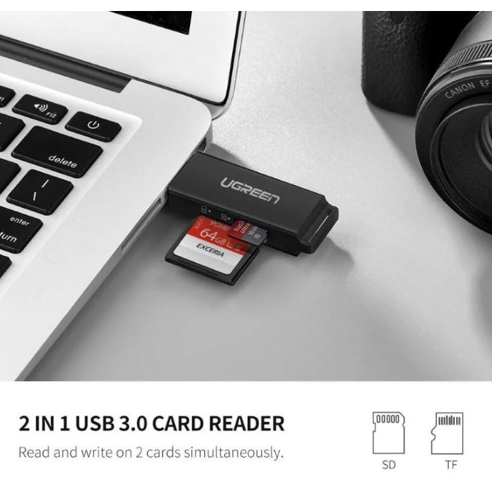 • Đầu đọc thẻ nhớ SD/TF Ugreen 40752 là phụ kiện giúp bạn kết nối thẻ TF (Micro SD, Micro SDXC, Micro SDHC, M) // SD (SD, SDXC, SDHC) với máy tính dùng đọc và truyền tải dữ liệu tốc độ cao chuẩn USB 3.0 lên đến 5Gbps.