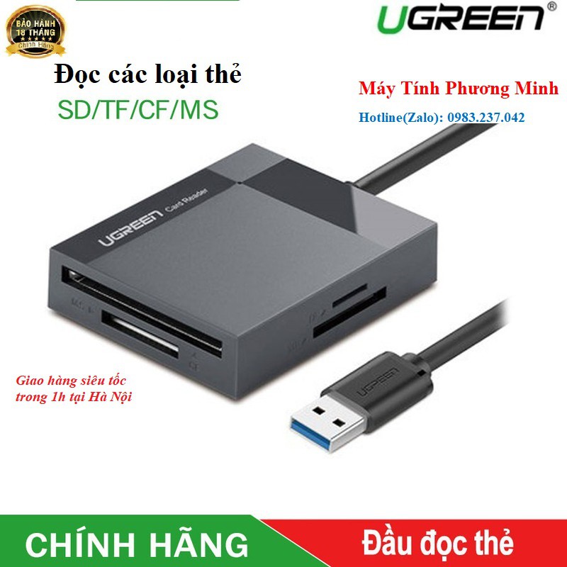 Đầu đọc thẻ nhớ tốc độ 3.0 all in one 4 trong 1 đọc các loại thẻ SD, TF, CF, MS Ugreen 30229 - Hàng cao cấp chính hãng