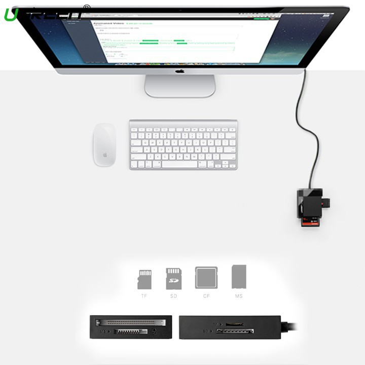 Đầu đọc thẻ đa năng Ugreen đọc được hầu hết các loại thẻ nhớ trên thị trường hiện nay: CF, MS, SD, Micro SD (TF) của các thương hiệu như Samsung, Toshiba, Sandisk, Transcend, Lexar…