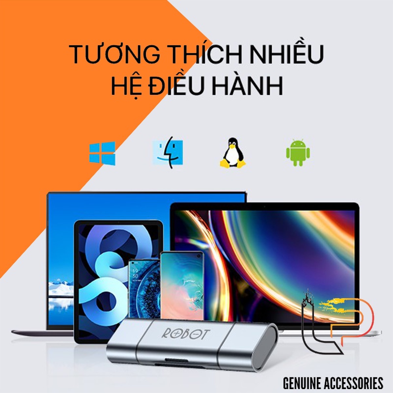 THIẾT BỊ ĐỌC THẺ NHỚ SD/ MICRO SD ROBOT CR202 - HAI ĐẦU TYPE-C VÀ USB 3.0- Thiết bị có khe cắm thẻ nhớ hỗ trợ các định dạng thẻ :