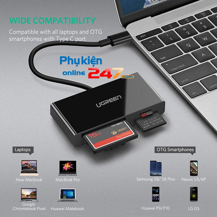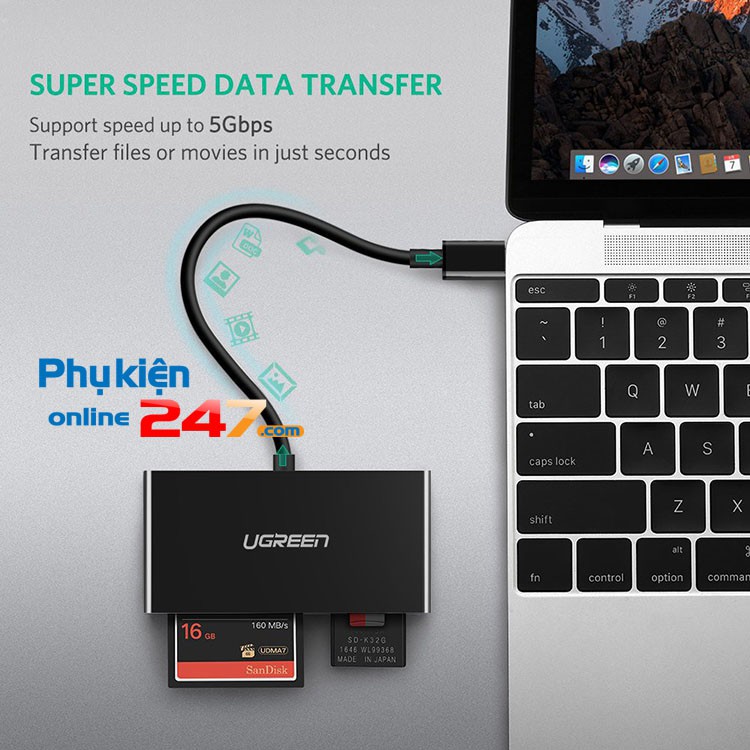 💢 Đầu đọc thẻ USB Type C (TF/SD/CF/MS) đa năng giúp bạn đọc được hầu hết các loại thẻ nhớ điện thoại, máy ảnh trên thị trường: Compact Flash (CF), TF, SD, MS sử dụng cho new Macbook, Macbook Pro, Dell XPS, điện thoại có cổng OTG Type C.