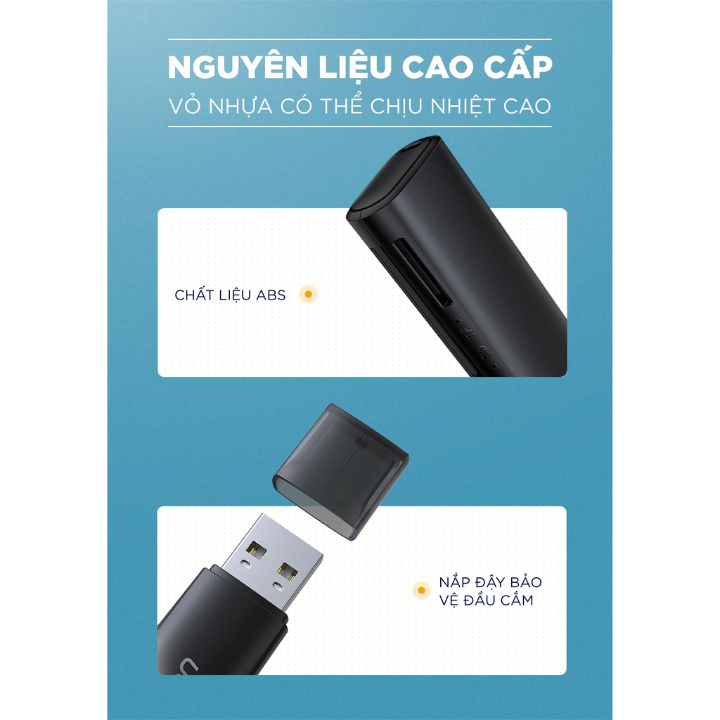 Thiết kế hiện đại có thể đọc thẻ SD và thẻ TFGiúp bạn kết nối thẻ TF/ SD với máy tính dùng đọc và truyền tải dữ liệu tốc độ cao chuẩn USB 2.0 lên đến 35MB/S
