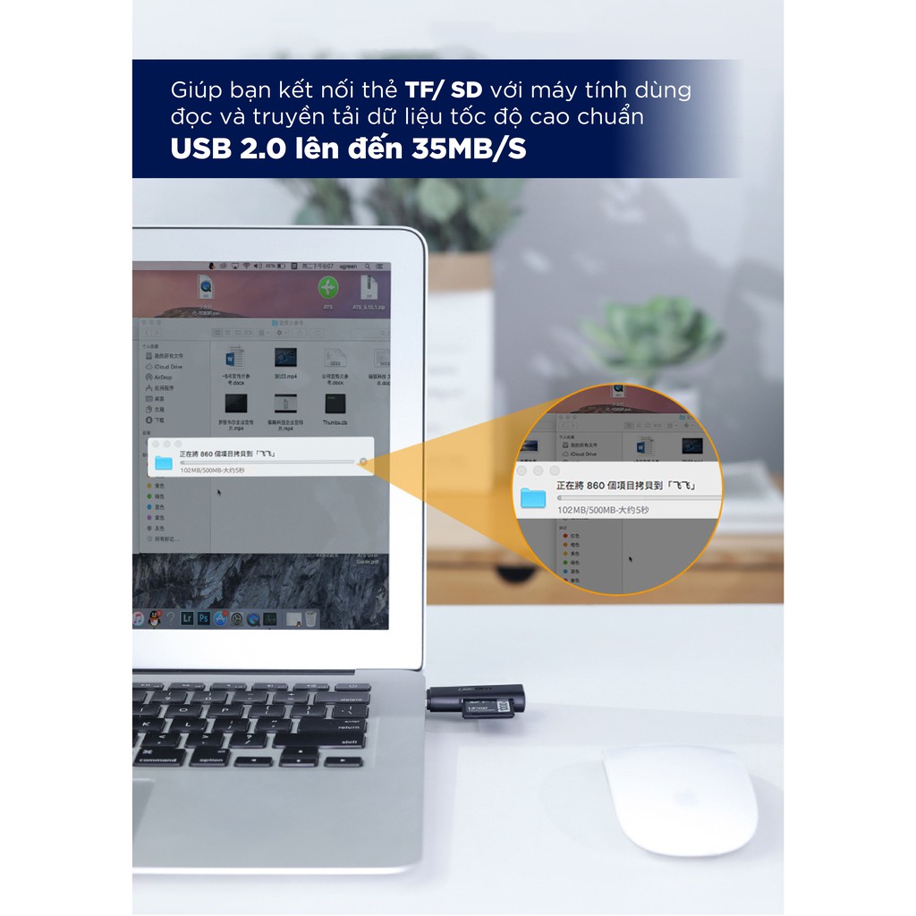 Giới thiệu Đầu đọc thẻ SD/TF chuẩn USB 2.0 UGREEN CM264 60721