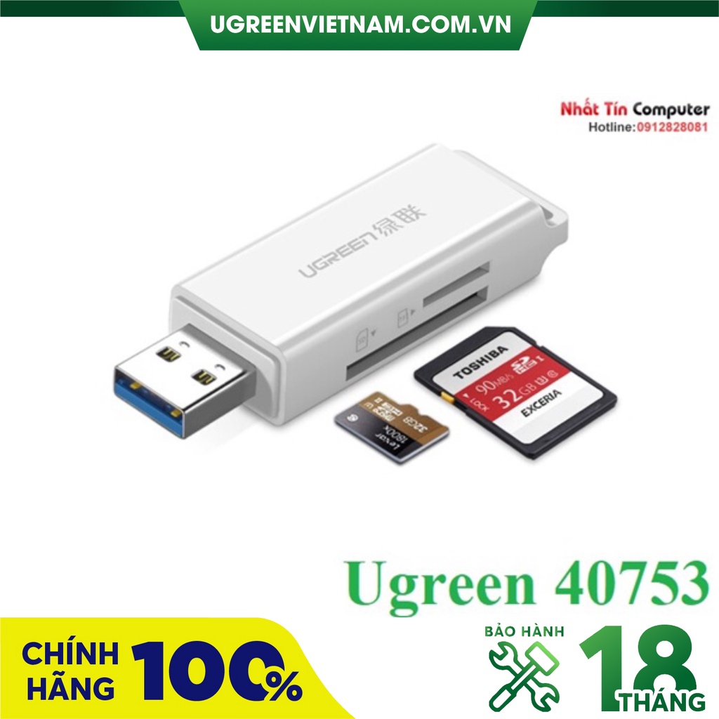 Đầu đọc thẻ SD/TF chuẩn USB 3.0 Ugreen 40753 chính hãng