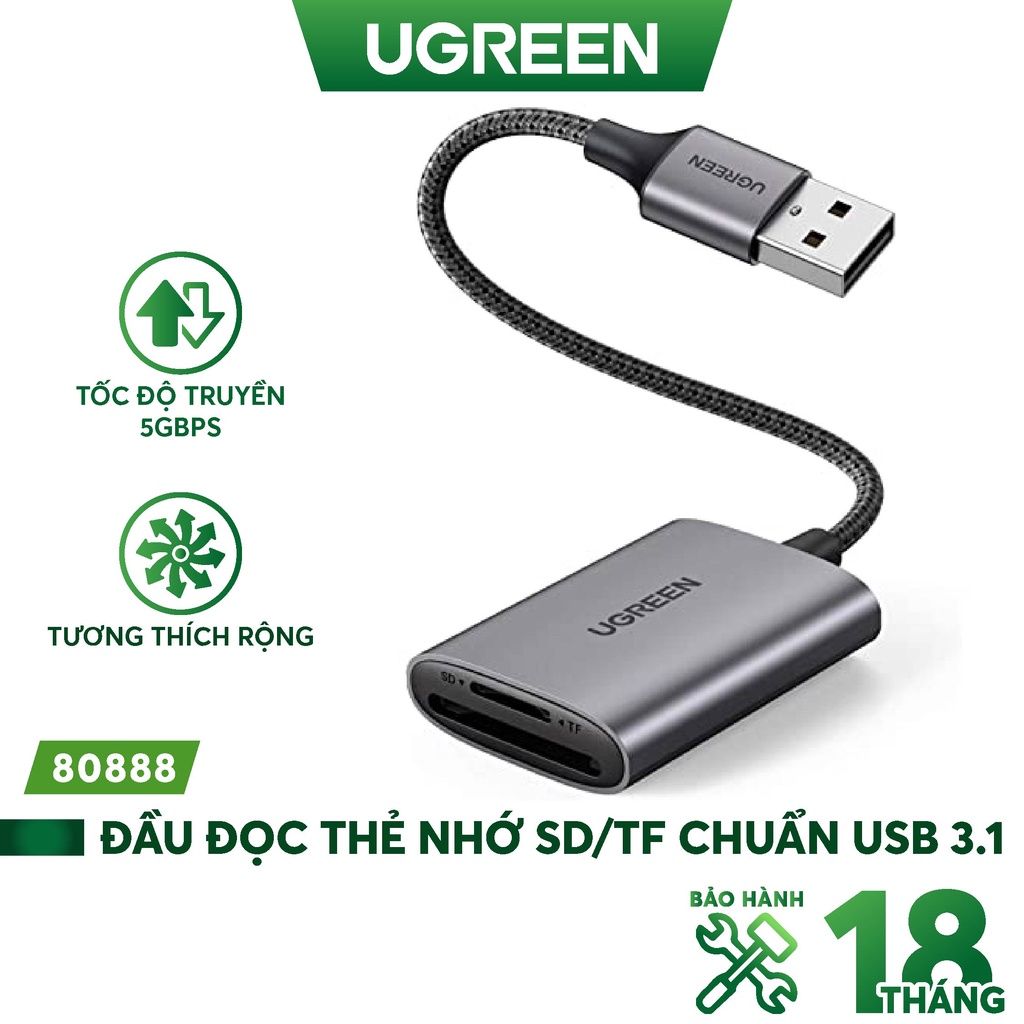 Đầu đọc thẻ SD/TF chuẩn USB 3.1 Type-C Ugreen 80888 vỏ nhôm cao cấp - Hàng phân phối chính hãngTHỜI GIAN GIAO HÀNG SIÊU TỐC ĐỘ:
