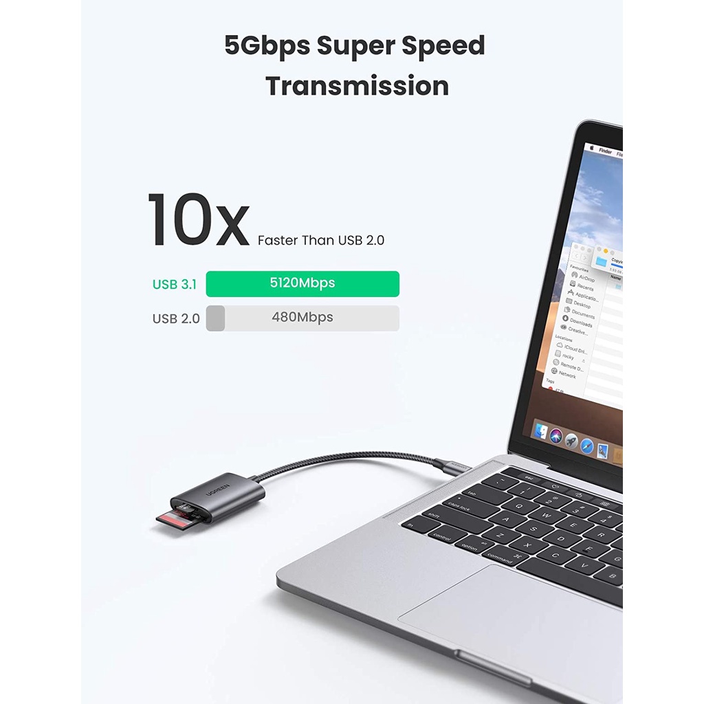 Đầu đọc thẻ Ugreen 80888 hỗ trợ đọc thẻ SD/TF cho máy tính, điện thoại di động có cổng USB Type C kết nối truyền tải dữ liệu hình ảnh, video. Ugreen 80888 sử dụng đọc các thẻ SD/TF với máy tính, Macbook, điện thoại di động và máy tính bảng hỗ trợ chuẩn USB Type C có chức năng OTG giúp bạn truyền tải dữ liệu với tốc độ 5Gbps chỉ trong vài giây.Thông số kỹ thuật đầu đọc thẻ SD/TF chuẩn USB Type C Ugreen 80888