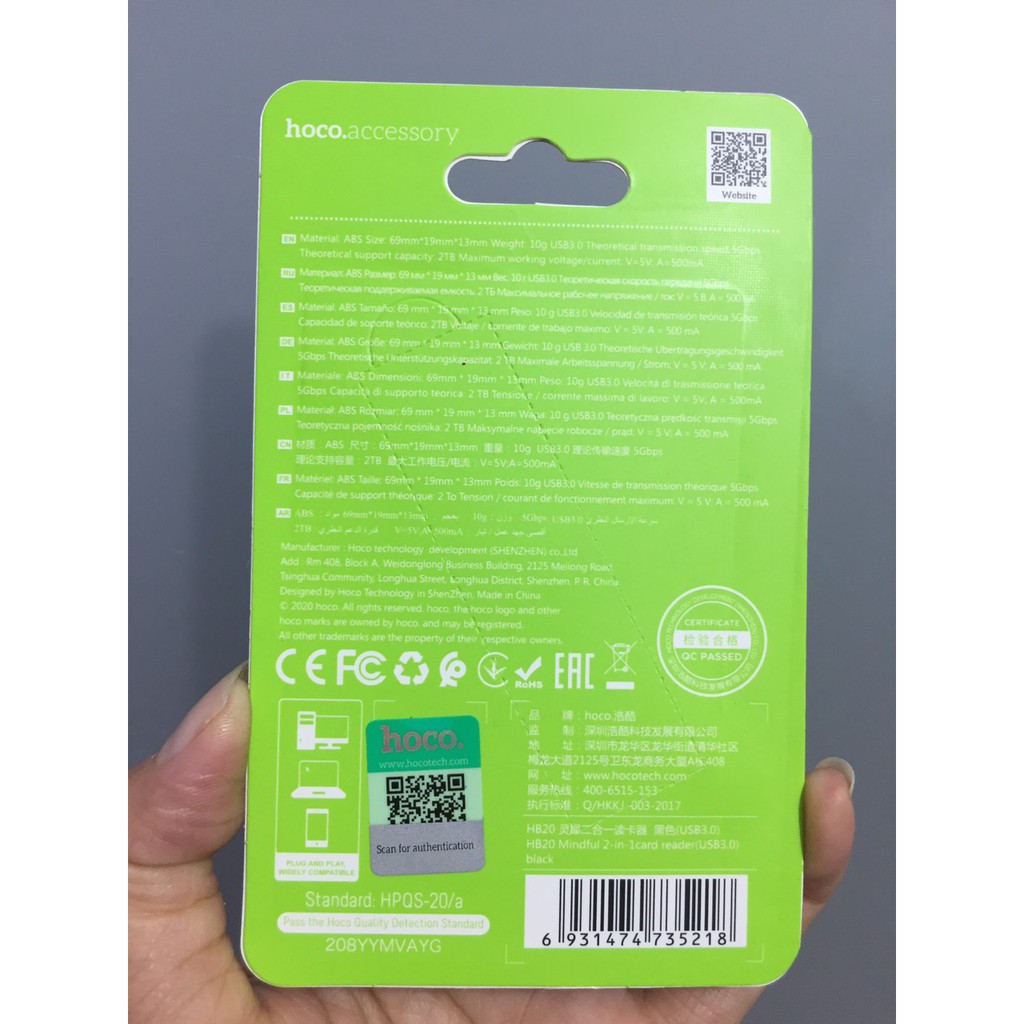 Đầu đọc thẻ nhớ USB thương hiệu hoco., model: HB20-USB 3.0 / 2.0