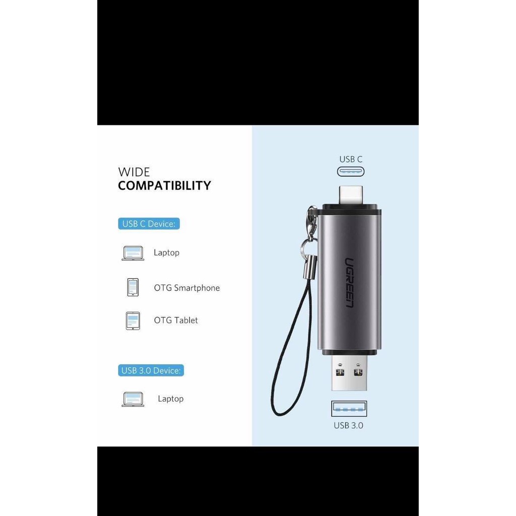 ➖ Đầu đọc thẻ Ugreen 50706 có 2 chân cắm rất tiện lợi: USB 3.0 dùng cho máy tính thông thường và 1 cổng USB Type C (USB Chuẩn C) dùng cho các các thiết USB Type C như: điện thoại Samsung S8, 8 Plus, HTC 10, LG V20, G Macbook 12, Macbook 13, Macbook 15 Touchbar, Dell XPS 13, các dòng Laptop có USB-C khác.